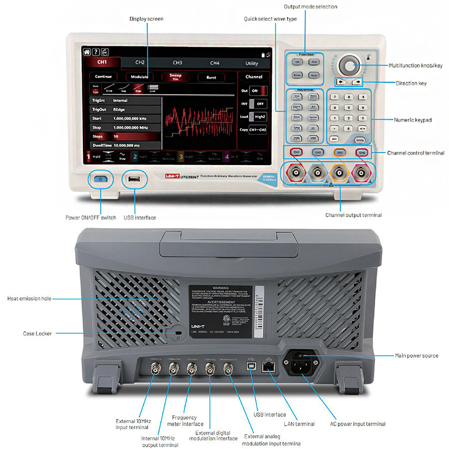 • UTG9604T - 4 CH, 600 MHz, 2.5 GS/s, Arbitrary Waveform Generator